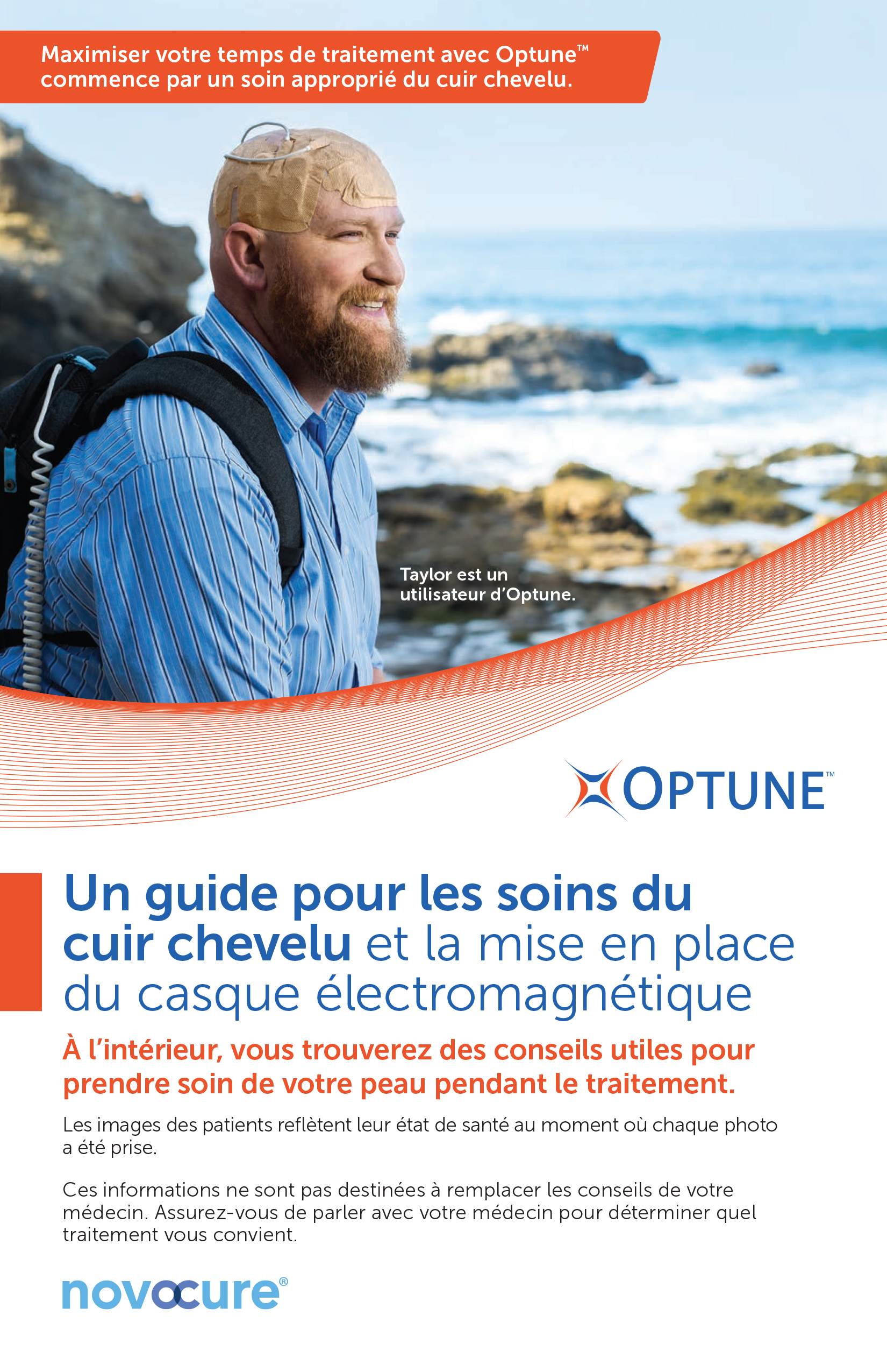 Téléchargements RESSOURCES À L’INTENTION DES PATIENTS Manuel de l’utilisateur Optune VOIR LE PDF Guide d’utilisation de MyLink™ VOIR LE PDF Soins du cuir chevelu Guide pour les soins du cuir chevelu et la pose du casque électromagnétique VOIR LE PDF nCompass Soutien complet aux patients pour les utilisateurs d’Optune VOIR LE PDF Démarrer Optune Un guide pour les nouveaux utilisateurs et leurs aidants naturels VOIR LE PDF Apprenez-en plus au sujet d’Optune Premier aperçu d’Optune et de son fonctionnement VOIR LE PDF Guide de démarrage rapide Connaître la trousse de traitement d’Optune VOIR LE PDF SUIVANT : FAQ